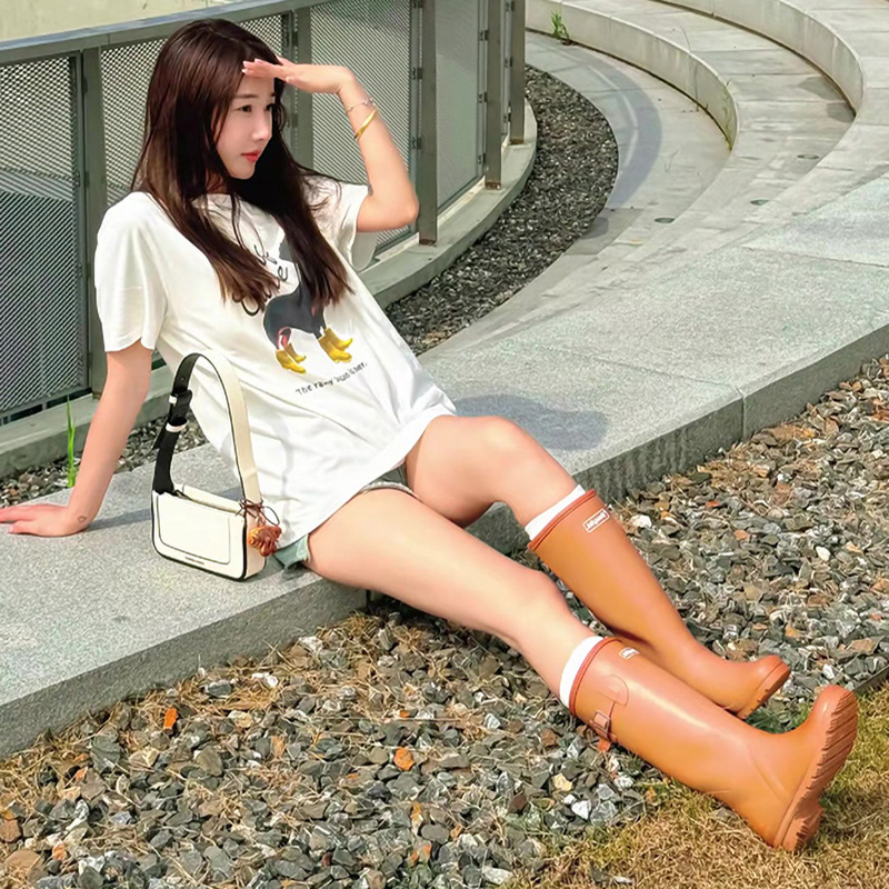 高筒夏季 成人中筒靴防滑时尚 轻便外出雨靴防水防臭厚底 女款 雨鞋