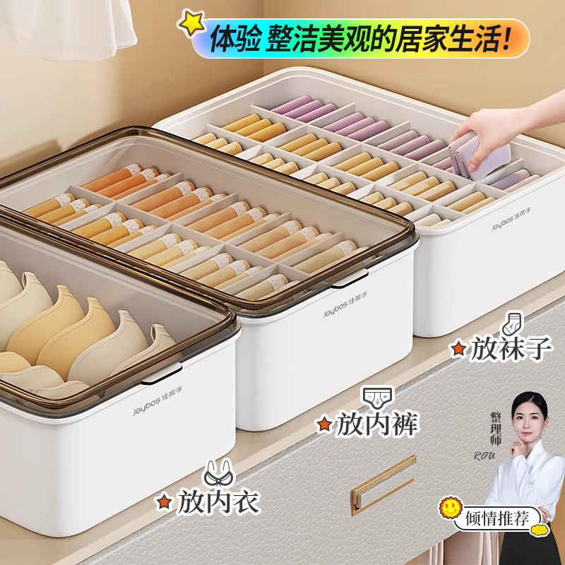 佳帮手带盖内衣收纳盒家用内裤 内衣袜子三合一神器贴身衣物整理盒