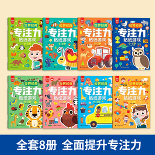 全套8册 贴纸书0到3岁儿童益智早教书宝宝书本婴儿1一2岁绘本一至两岁半以上幼儿书籍全脑开发家庭游戏全书专注力思维训练贴贴画
