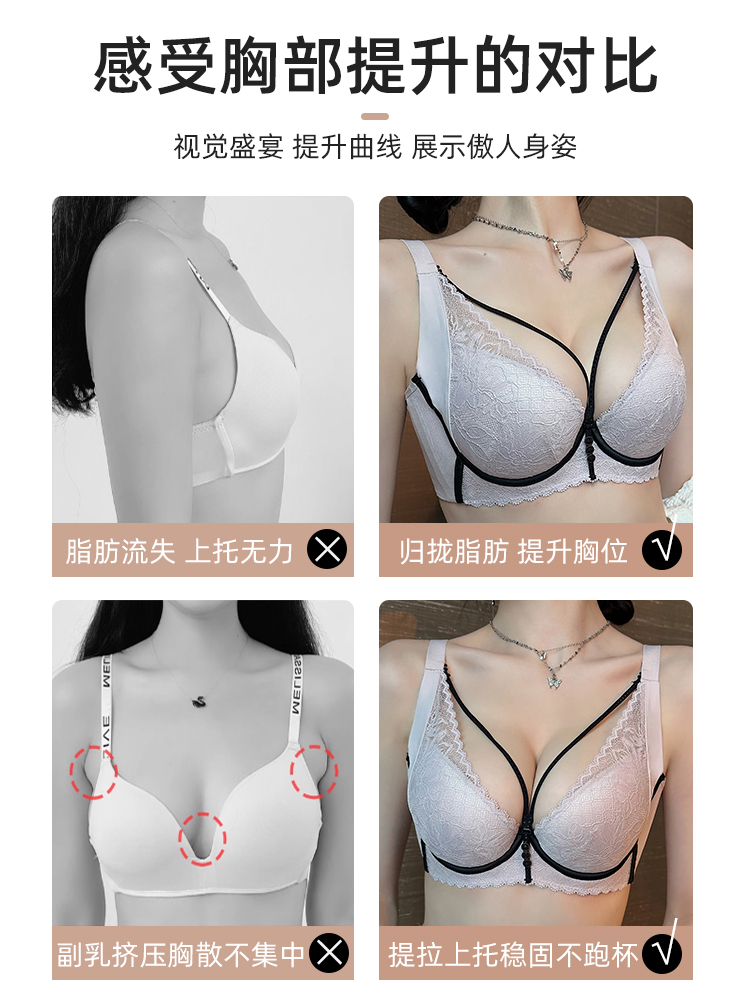 卉岩聚拢小胸显大软钢圈调整型内衣女承托防下垂外扩收副乳文胸