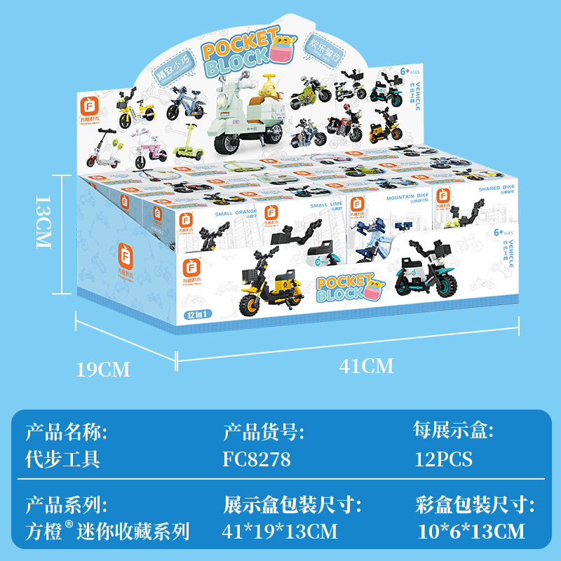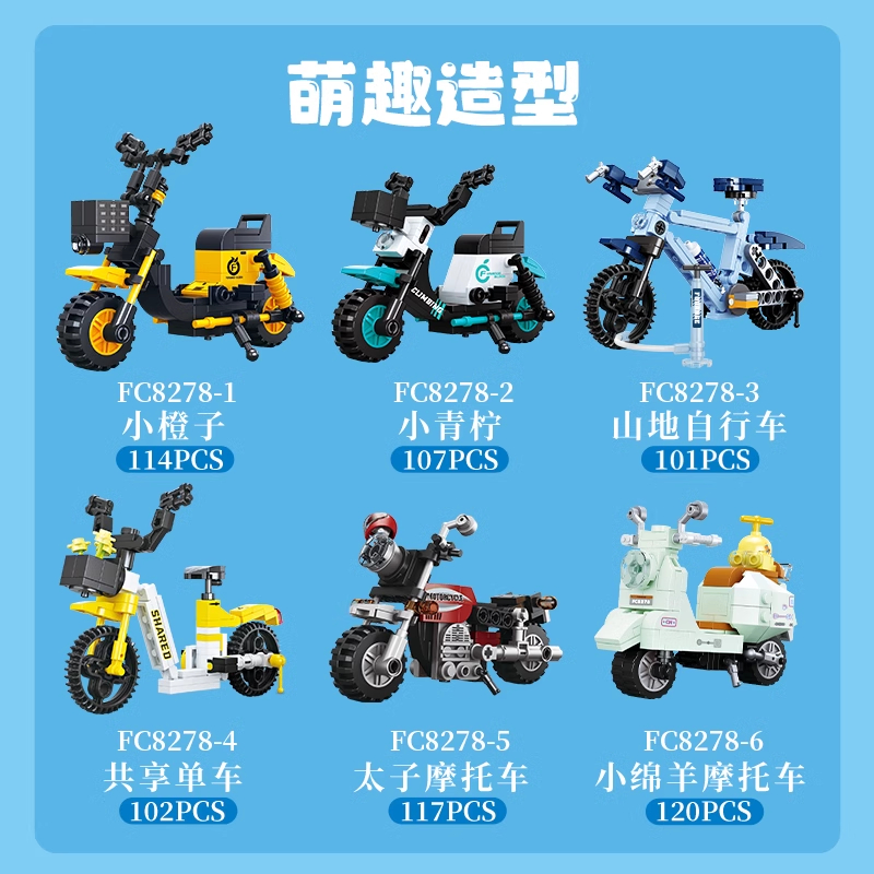 方橙积木摩托车玩具儿童益智力拼装 自行车男孩小颗粒拼图模型礼物