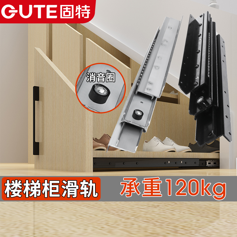 固特二节导轨抽屉轨道滑道滑轨加厚电脑桌键盘滑槽衣橱柜静音滑轮