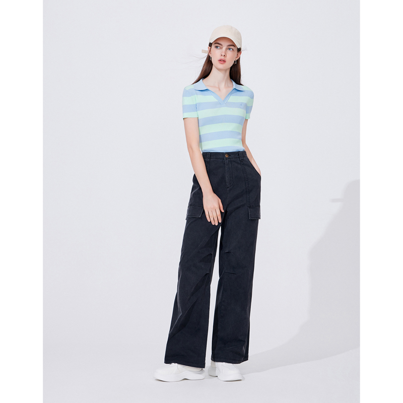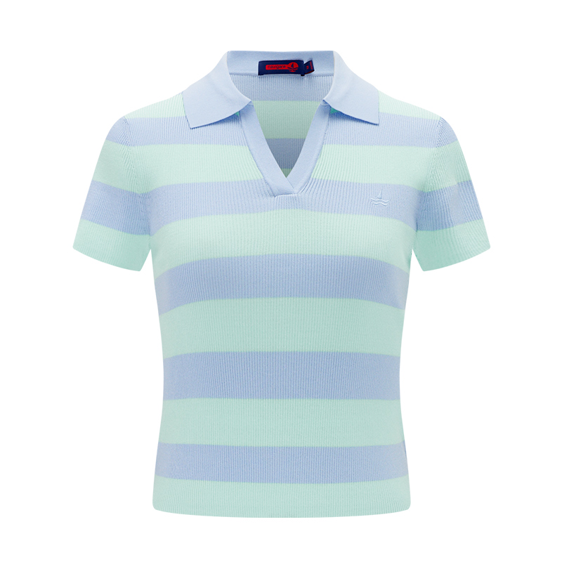 绿色休闲翻领Polo衫 Navigare意大利小帆船条纹针织短袖 T恤女夏季
