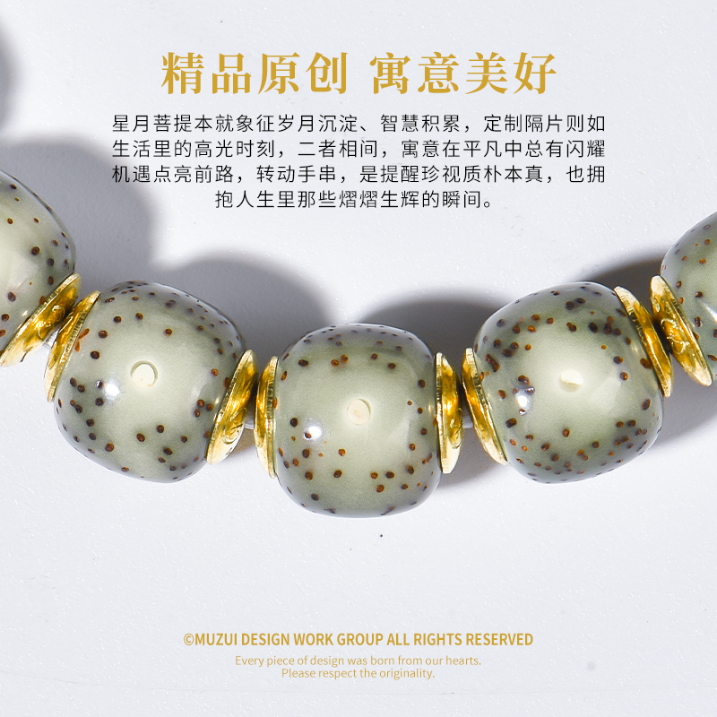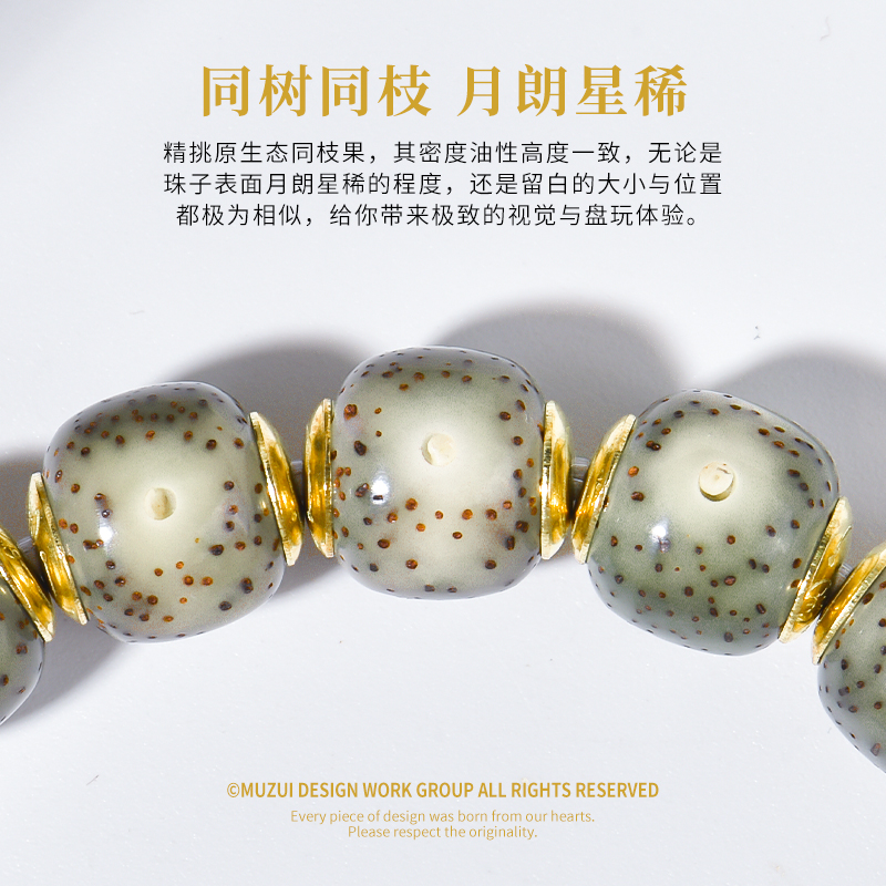 海南原生态同枝果单圈生日礼物 星月菩提手串男设计款 木醉 间金