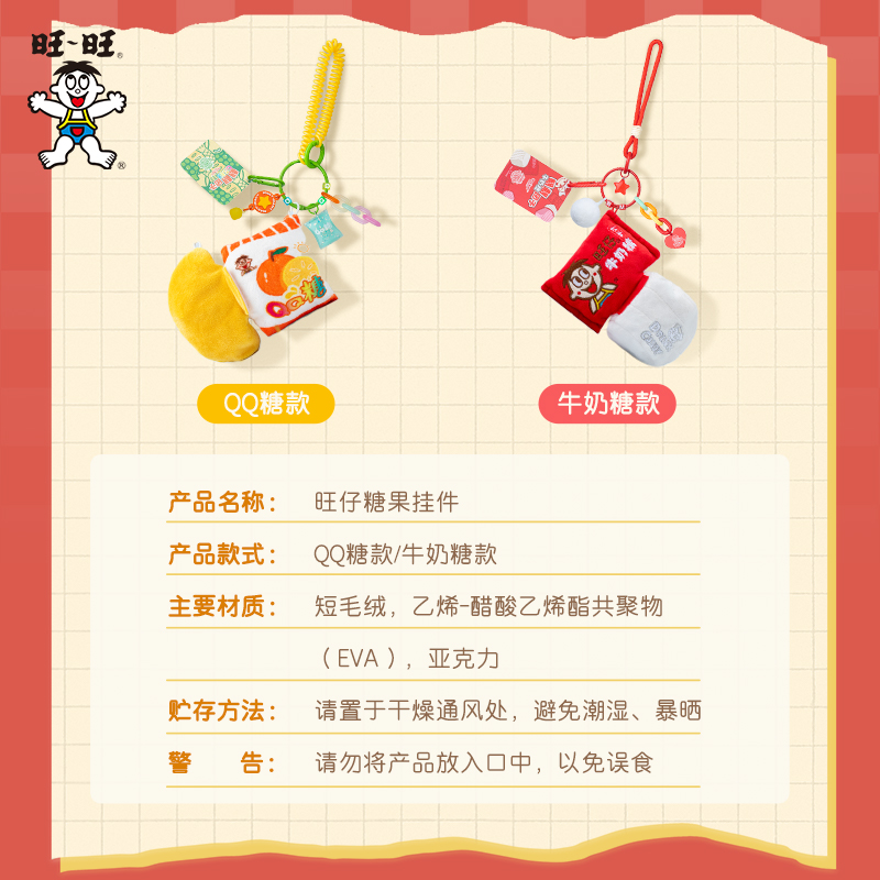 小饰品钥匙扣礼物 &QQ糖款 旺旺周边新品 旺仔糖果挂件牛奶糖款