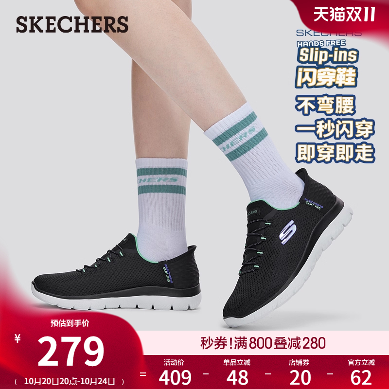 厚底缓震健步鞋 闪穿鞋 跑步鞋 ins秋女一脚蹬休闲运动鞋 斯凯奇slip