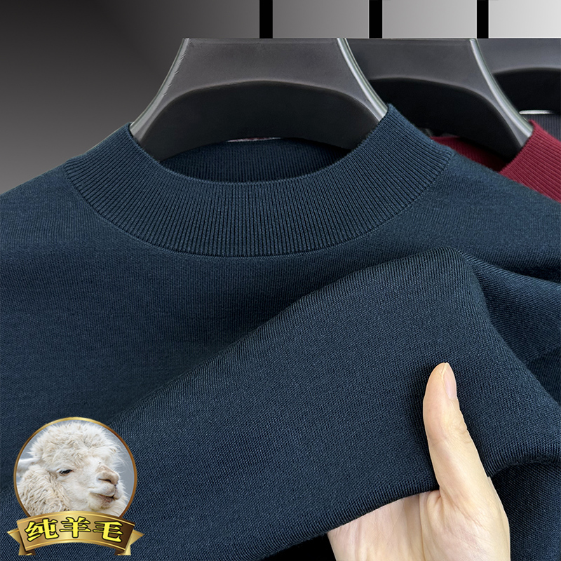宽松爸爸毛衣 精仿针织打底衫 半高领羊毛衫 男中年100纯羊毛加厚款