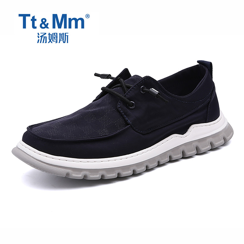 顽刻官方海军蓝春季 校园风W系列翻毛皮帆布拼接男女国潮滑板鞋
