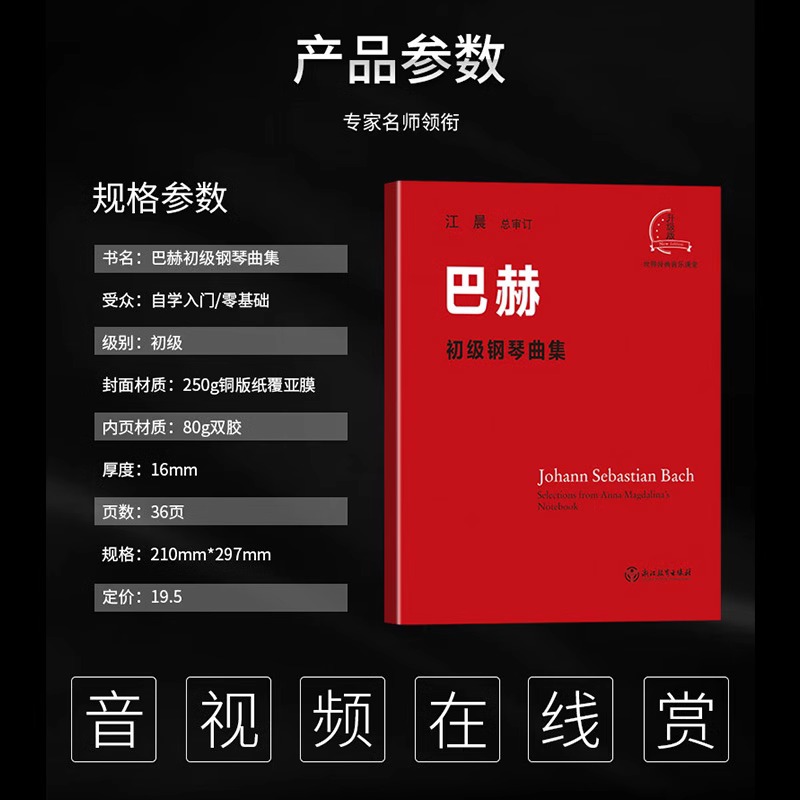 巴赫初级钢琴曲集 钢琴书练习曲书籍钢琴教材钢琴基础教程教材钢琴基础教材钢琴五线谱教材初学者入门自学 儿童初级入门教学用书