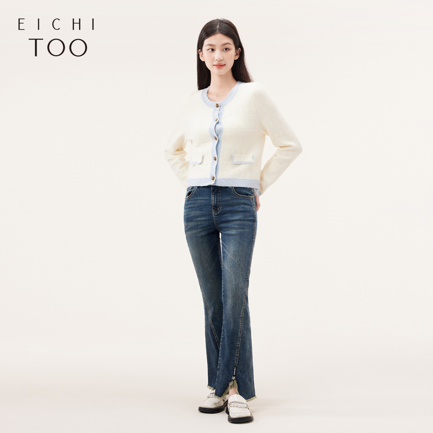 免定金 气质通勤裤 赵露思许妍同款 新款 子 朗姿微喇高腰牛仔裤