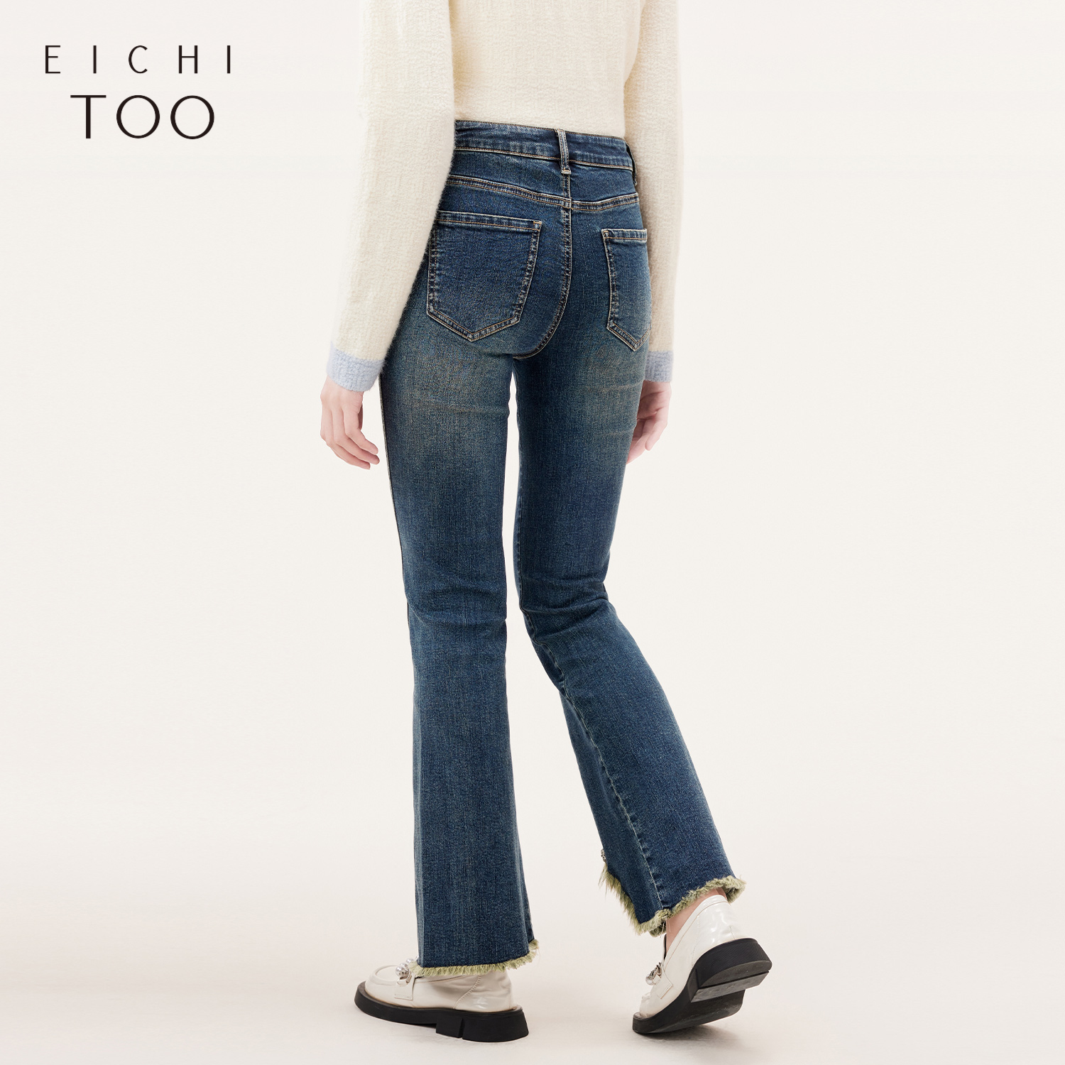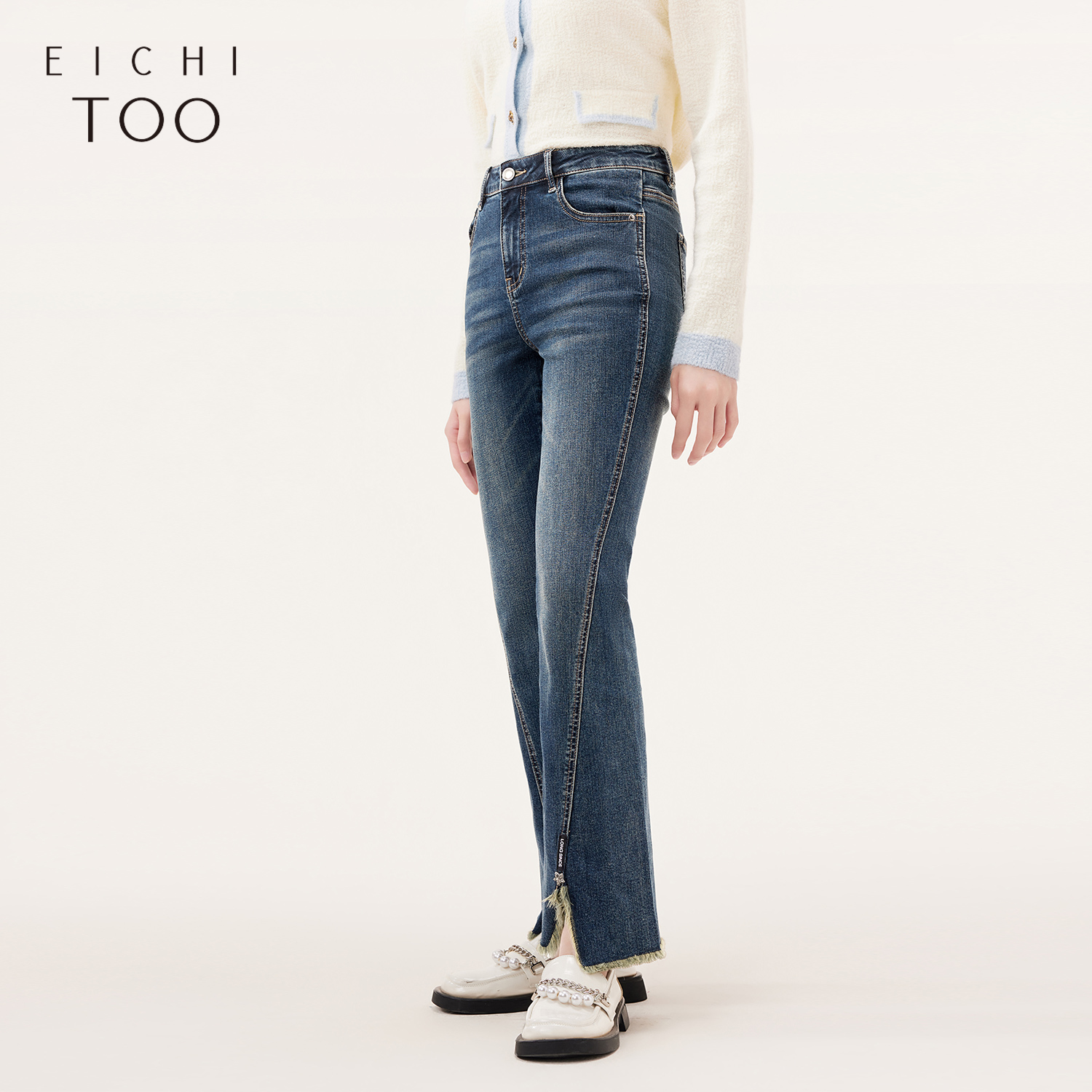 显瘦女 怀旧蓝莱赛尔中高腰不贴腿微喇牛仔裤 王家有鱼 夏日慵懒
