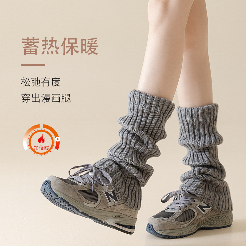 压力小腿袜女半腿jk风中筒堆堆袜配靴子长靴小皮鞋 灰色秋冬长筒袜