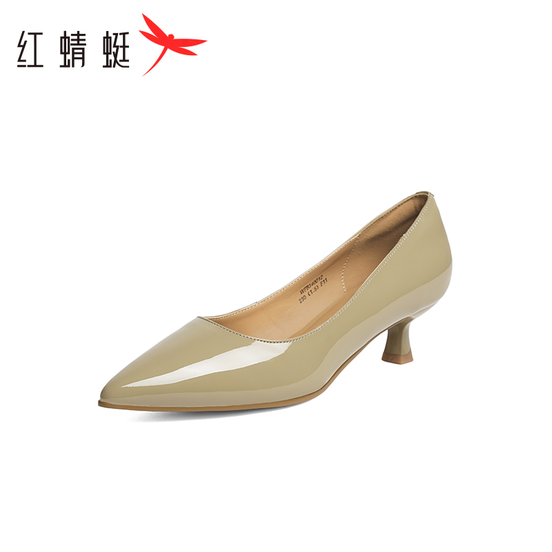 女鞋 新款 通勤职业小皮鞋 法式 红蜻蜓尖头高跟鞋 气质细跟单鞋 女秋季