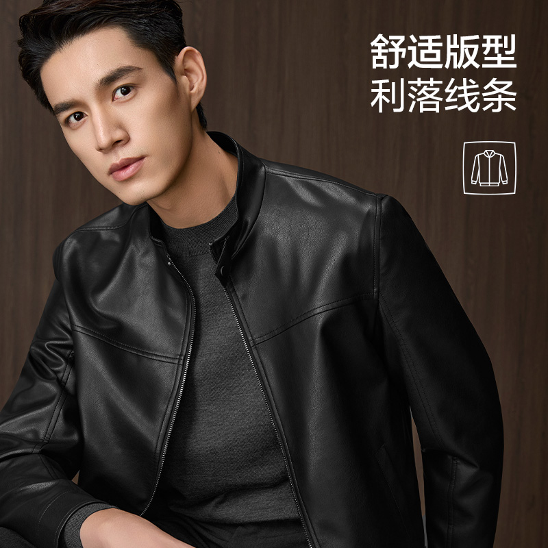 HLA 皮衣外套男 海澜之家轻商务PU皮夹克25秋新立领易打理休闲时尚