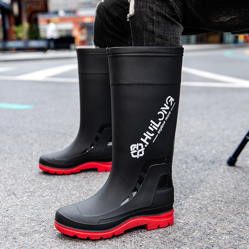 高筒加厚胶雨靴防滑劳保防水靴中筒橡胶新款 雨鞋 耐磨牛筋底男士