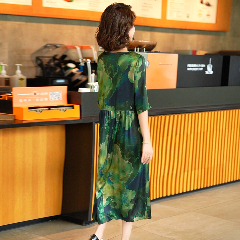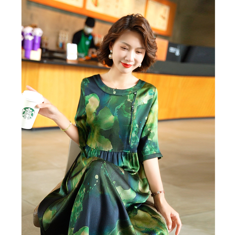气质显瘦a字连衣裙 中长款 棉绸连衣裙女夏2025新款 人造棉纯色短袖
