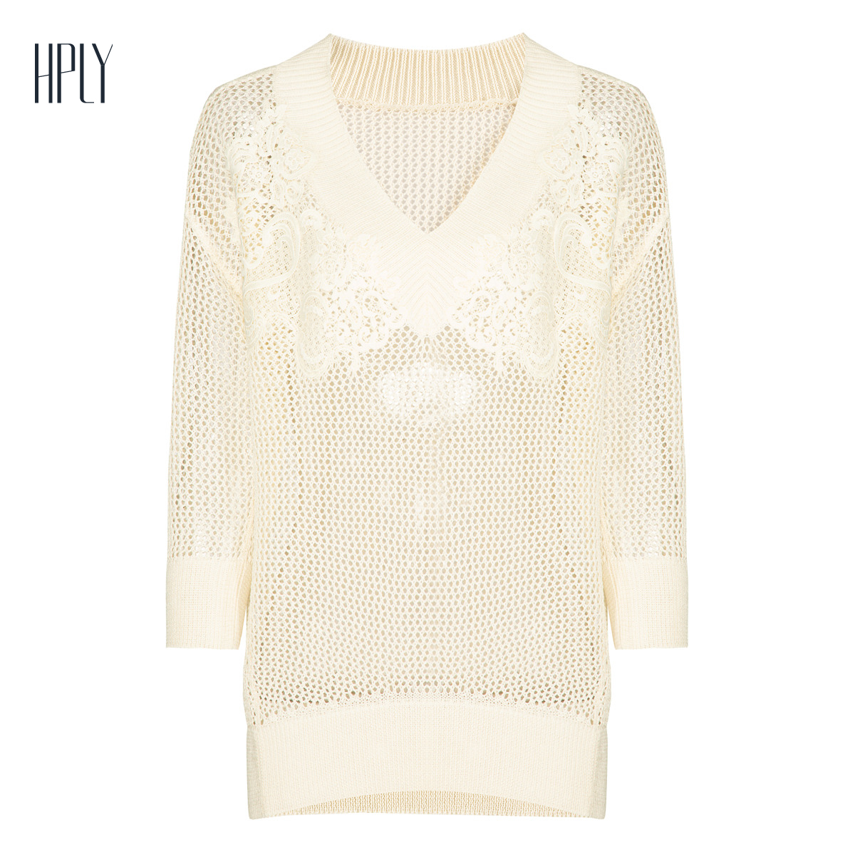女中长袖 新款 HPLY荷比俪夏季 镂空编织花朵针织衫 商场同款