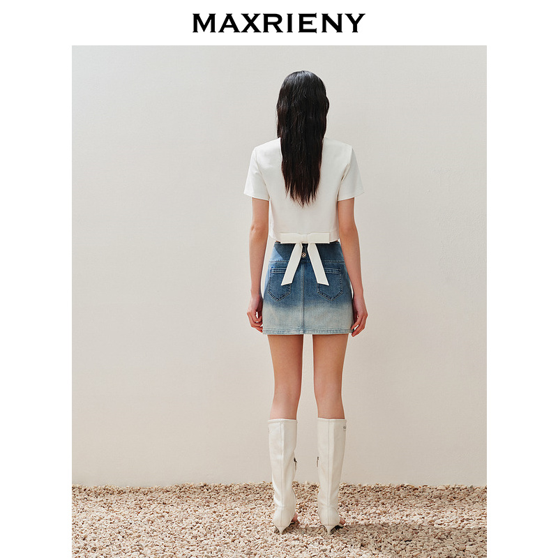 MAXRIENY华丽甜美感镂空刺绣钉珠T恤短袖 女高级气质感女装