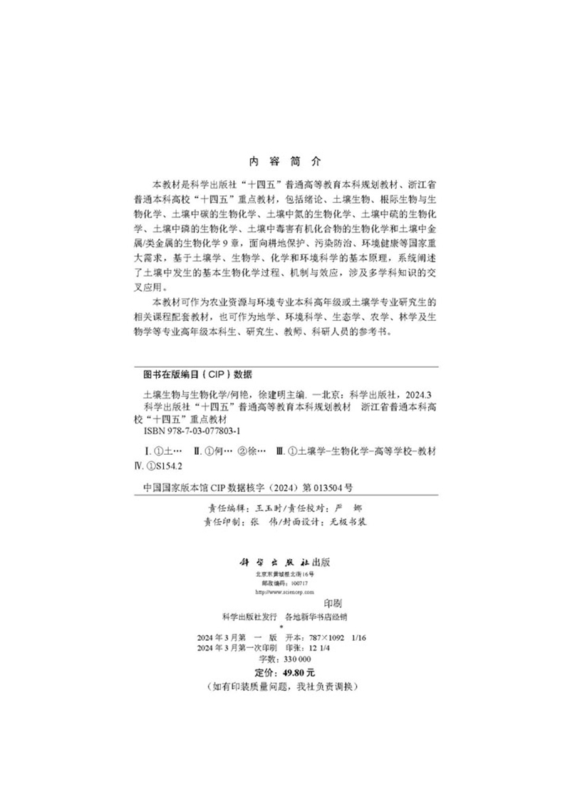 徐建明 何艳 普通高等教育本科规划教材 9787030778031 社 现货正版 科学出版 土壤生物与生物化学