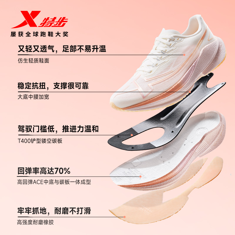 透气支撑入门竞速马拉松跑鞋 情侣同款 碳板跑步鞋 特步破茧之刃
