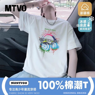 潮牌印花冰丝半袖 新款 t恤男2025夏季 迈特优冰氧4.0纯棉280g短袖