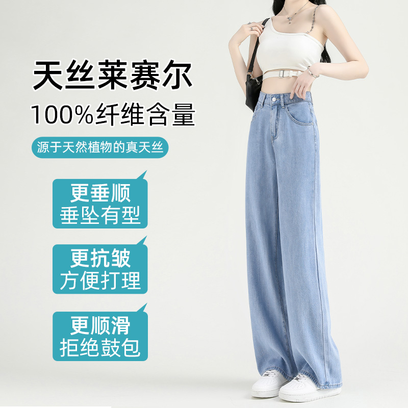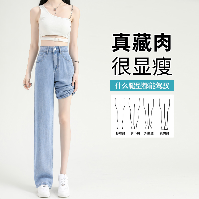 宽松显瘦阔腿直筒裤 莱赛尔天丝牛仔裤 冰丝高腰垂感窄版 薄款 女夏季