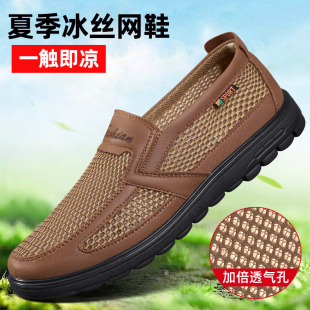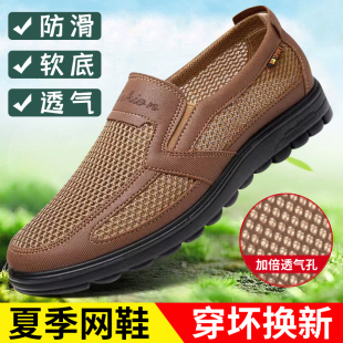 网面透气中老年软底休闲爸爸鞋 夏季 防滑老人凉鞋 男新款 老北京布鞋