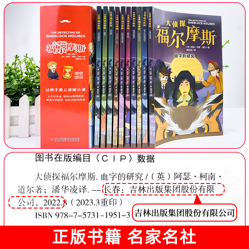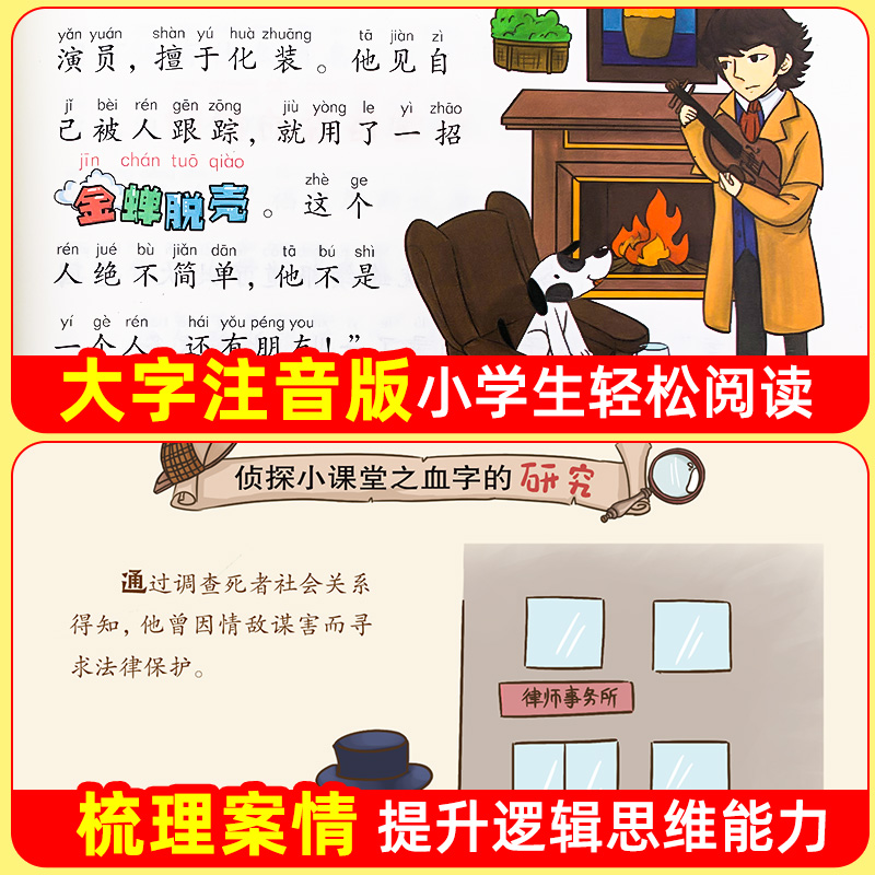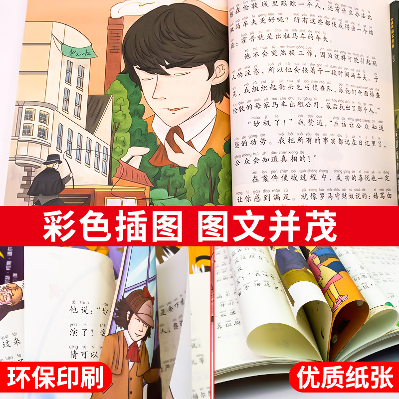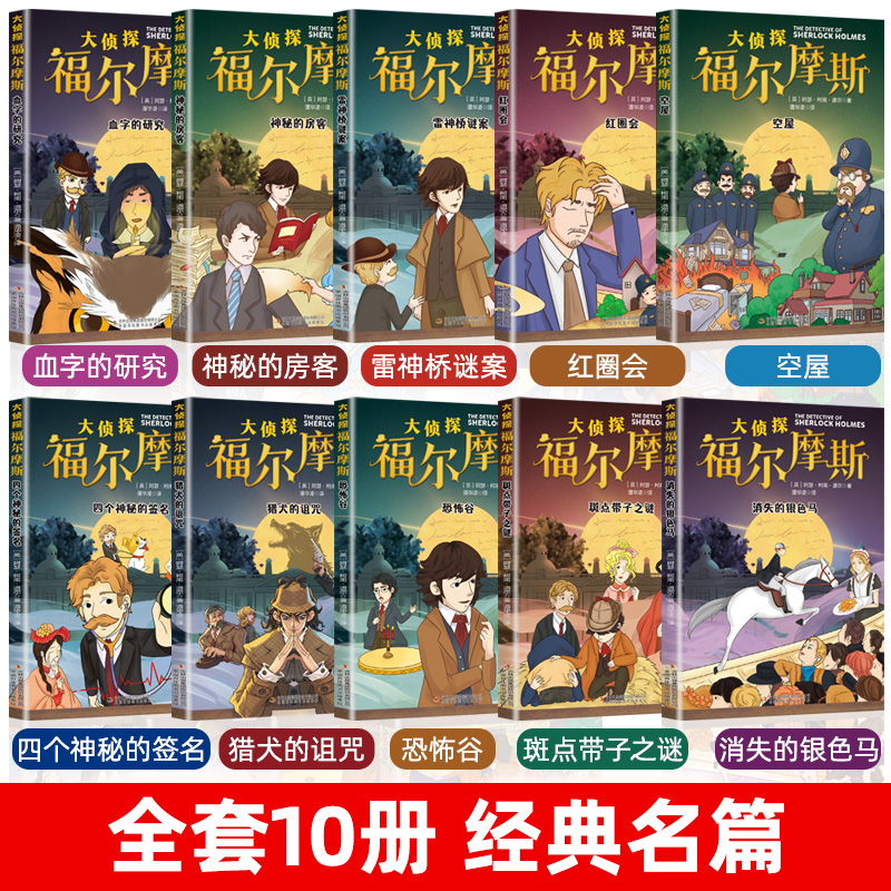 漫画小学生版 名侦探福尔摩斯探案集全集注音版 珍藏青少大侦探类书籍少儿童一二三到六年级课外必读破案推理故事小说 全套10册 正版