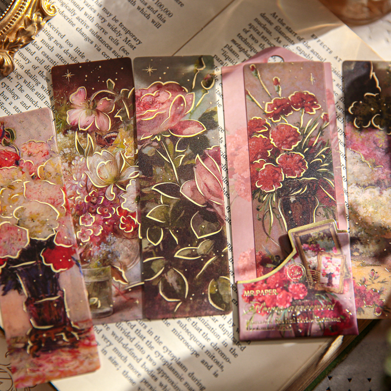 纸先生烫金PVC书签 高颜值ins花卉读书标记卡阅读书签 浪漫复兴