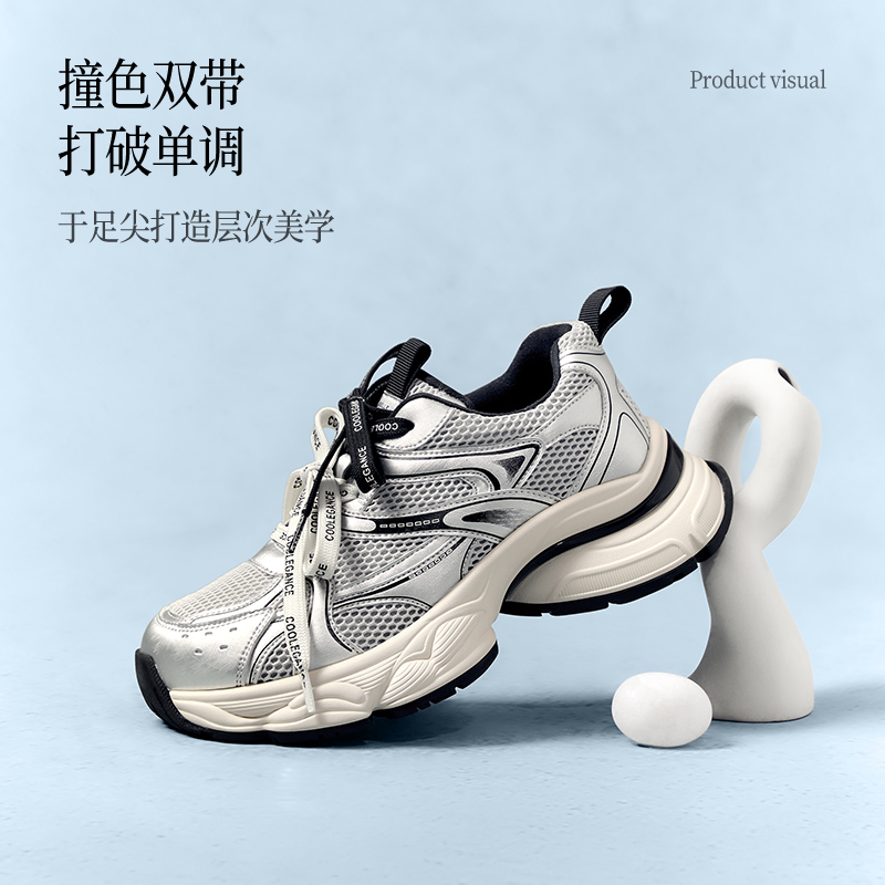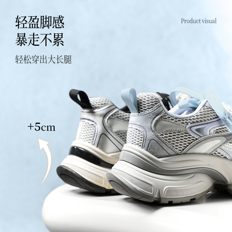 银色百搭休闲运动鞋 爆款 小个子增高2025新款 女秋季 松糕厚底老爹鞋