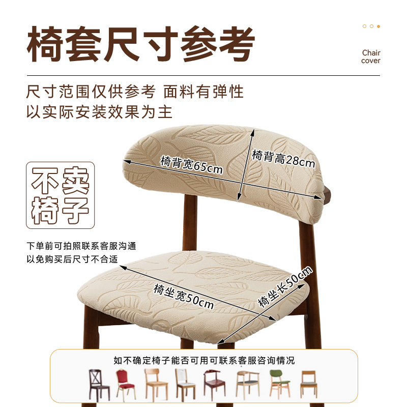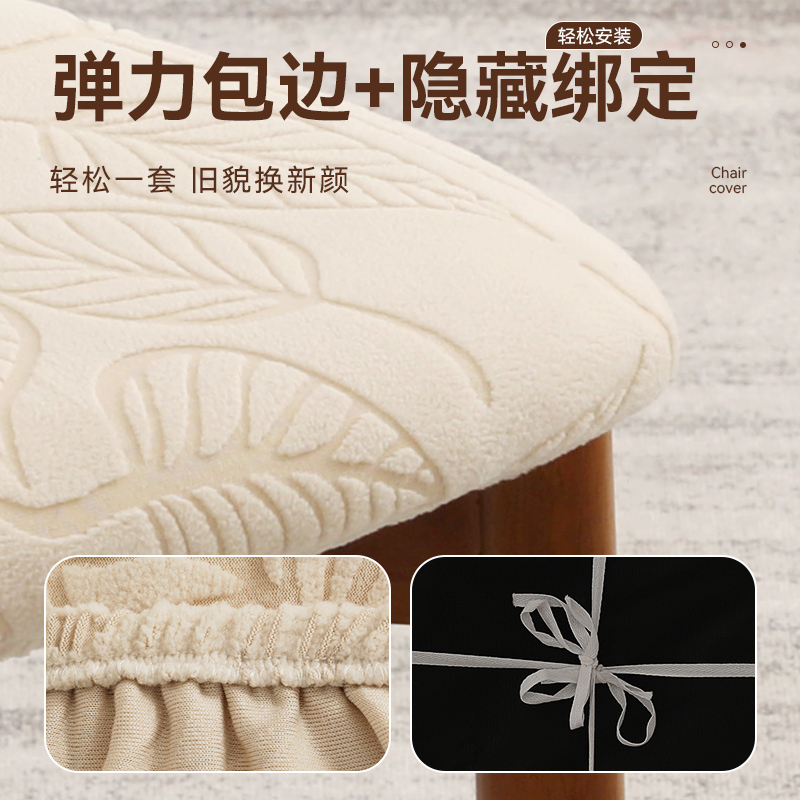 四季 通用方形实木凳子坐垫套靠背C形分体全包餐桌椅子套罩加厚