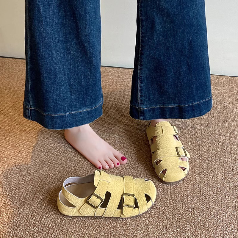 猪笼罗马鞋 洋气凉鞋 透气镂空勃肯鞋 配裙子包头新款 女2025编织夏季