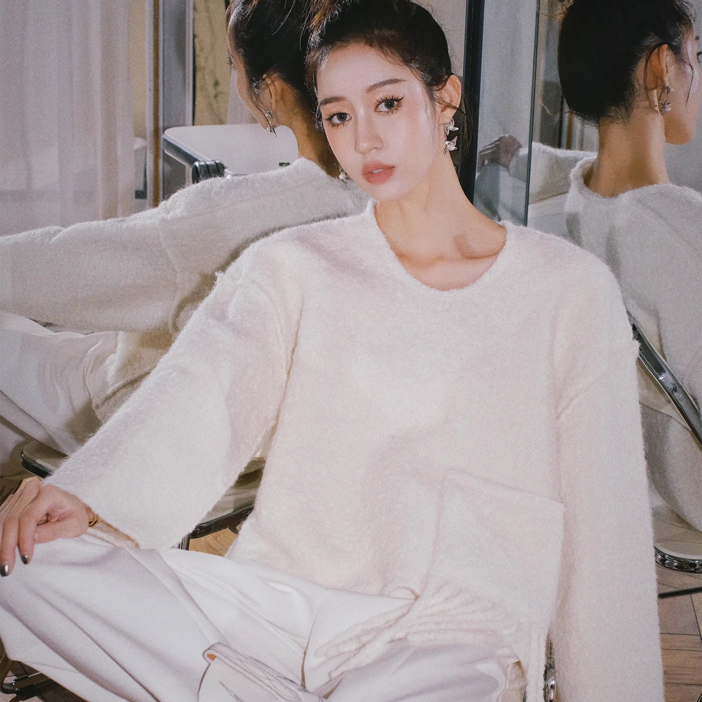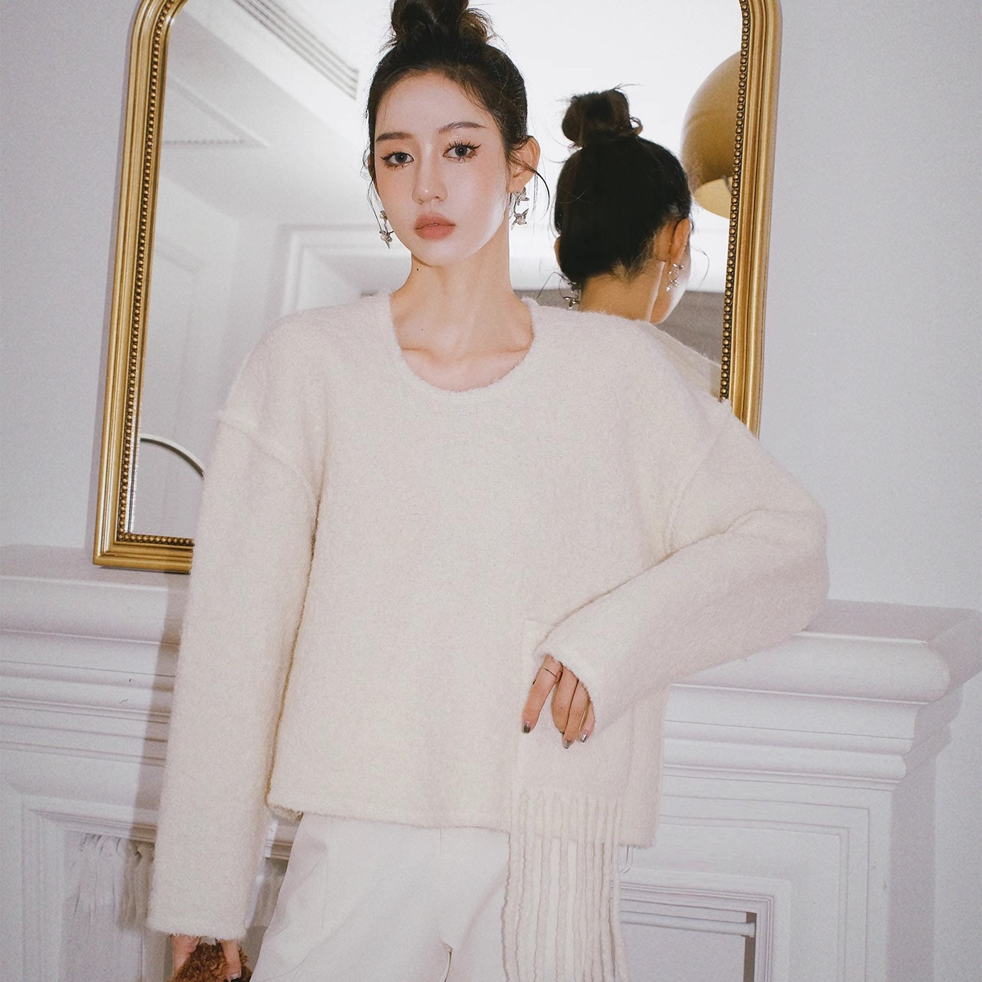 羊驼毛 deepmoss 圆领 流苏 套头上衣 奶白色 4折清货M