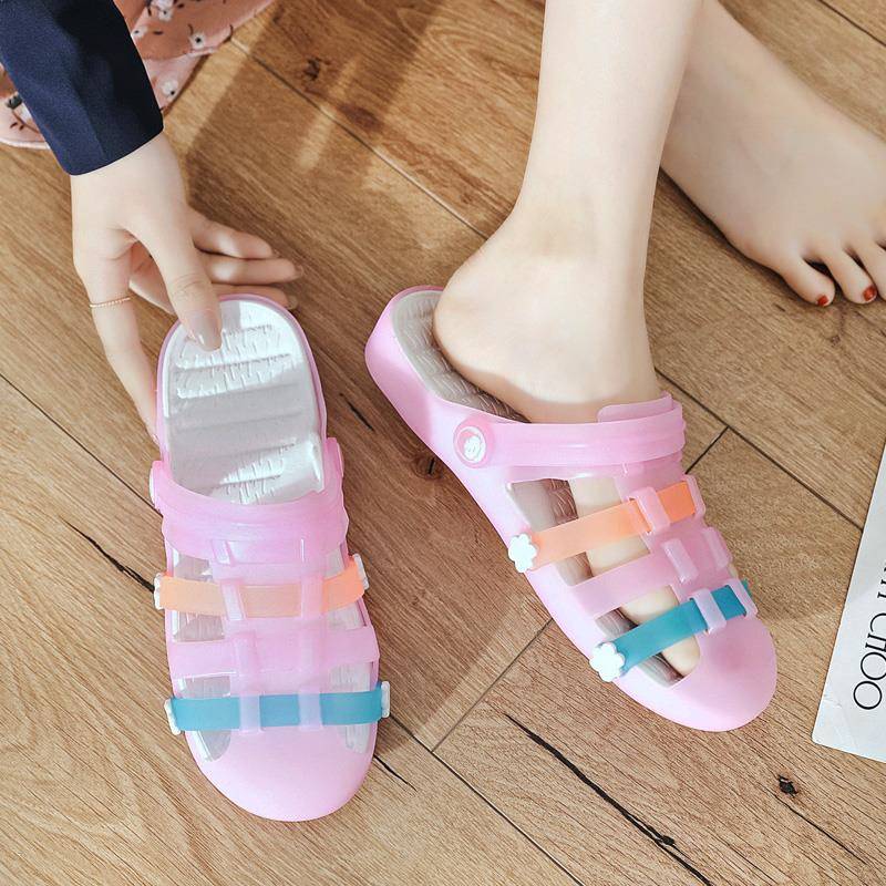 夏季 沙滩足弓支撑eva防臭厚底包头凉鞋 外穿女 女款 孕妇防滑洞洞鞋