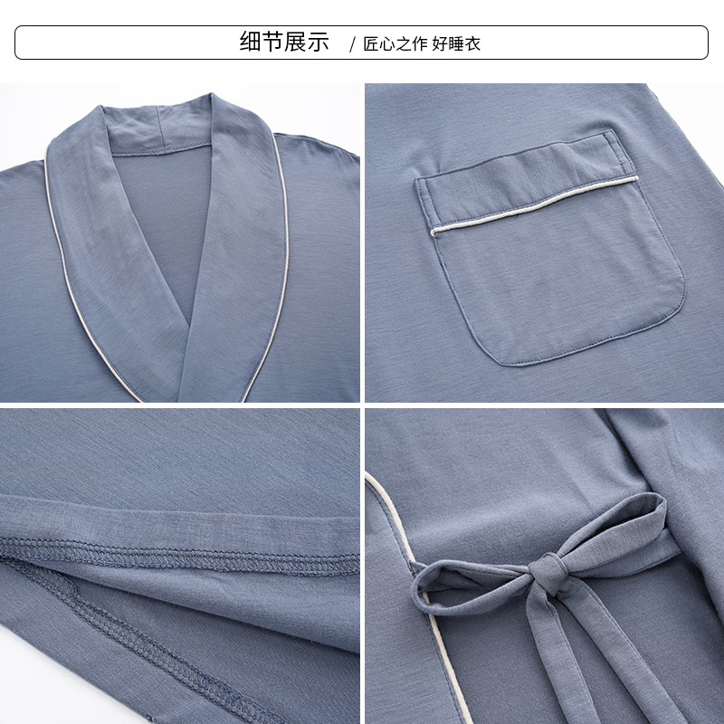睡衣夏天大码 帕兰朵睡袍男士 莫代尔短袖 薄款 浴袍简约家居服男 夏季