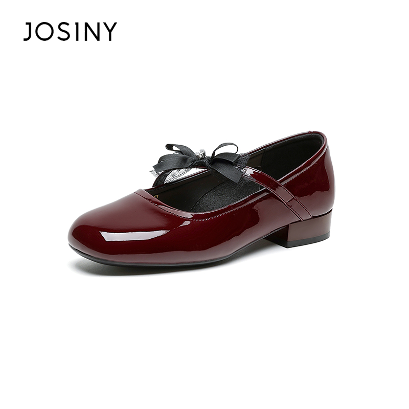 红色玛丽珍鞋 法式 百思图莫奈花园25秋新款 女单鞋 乔欣明星同款