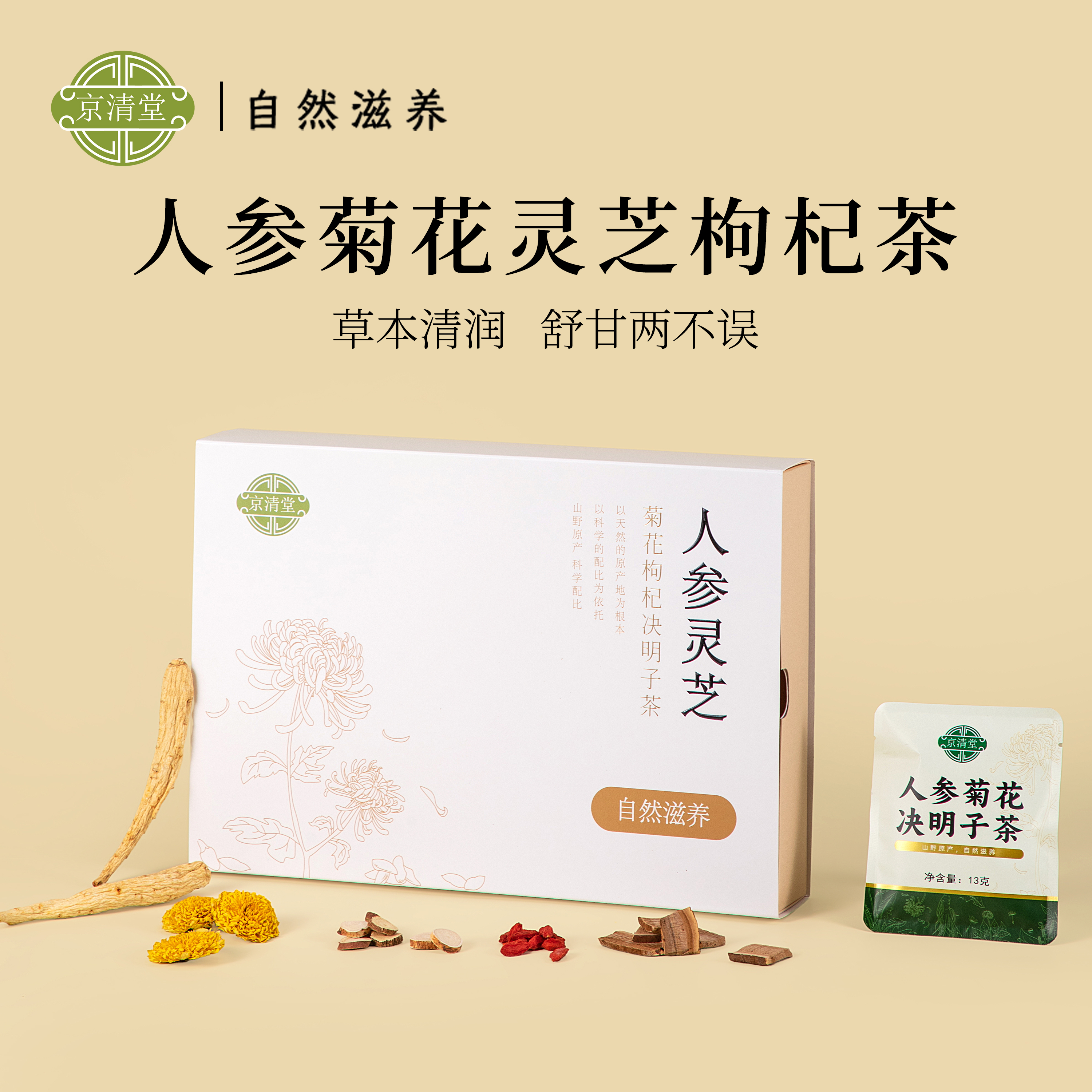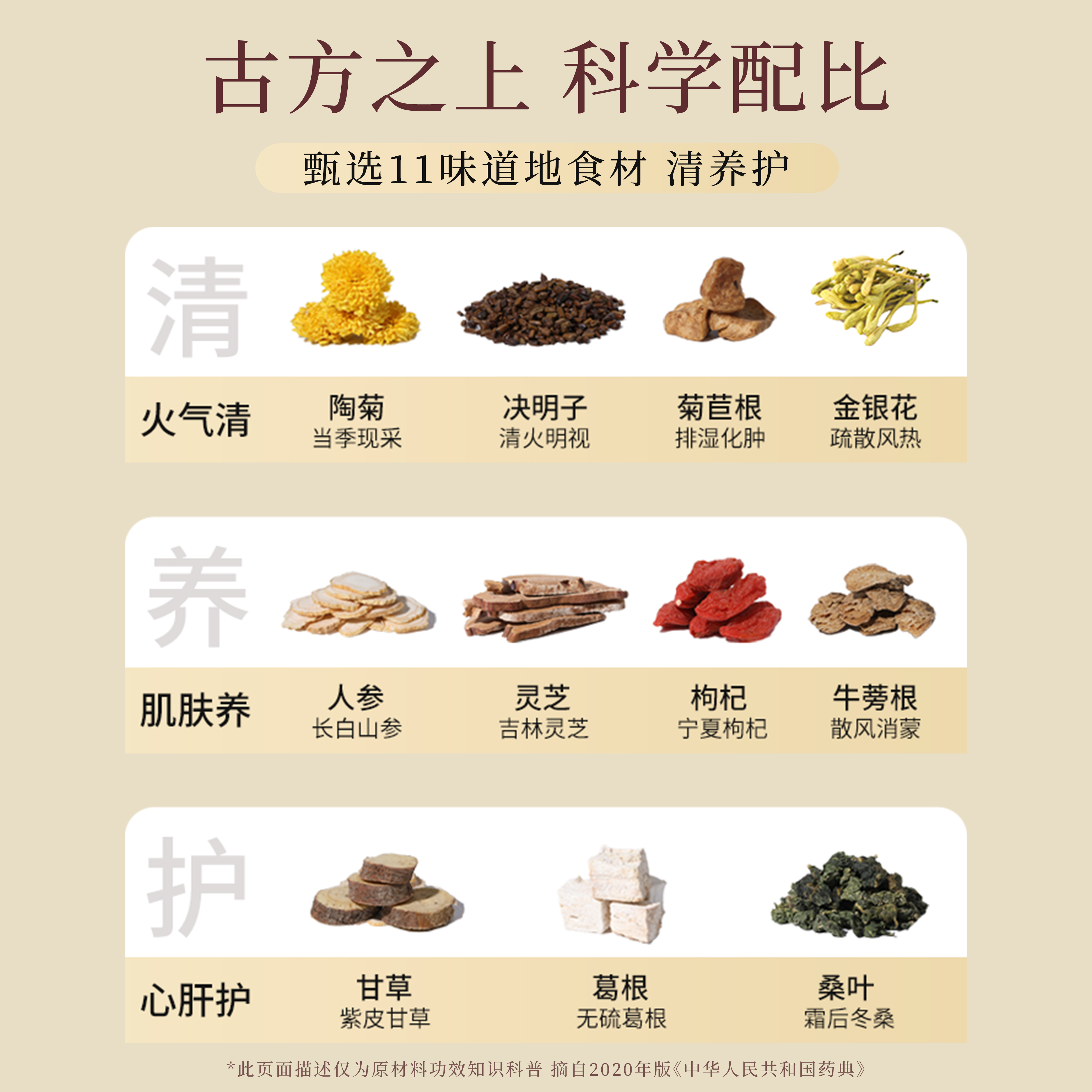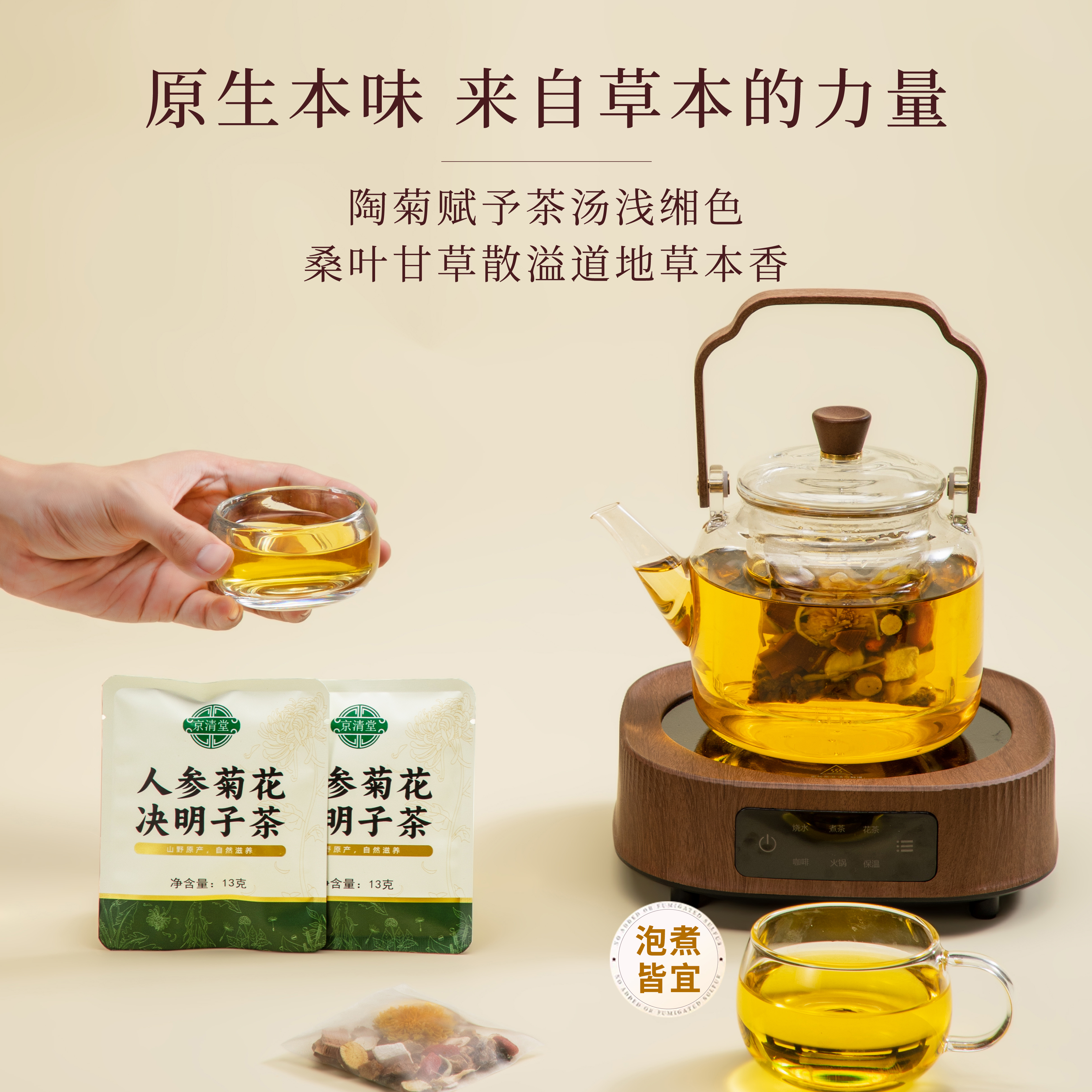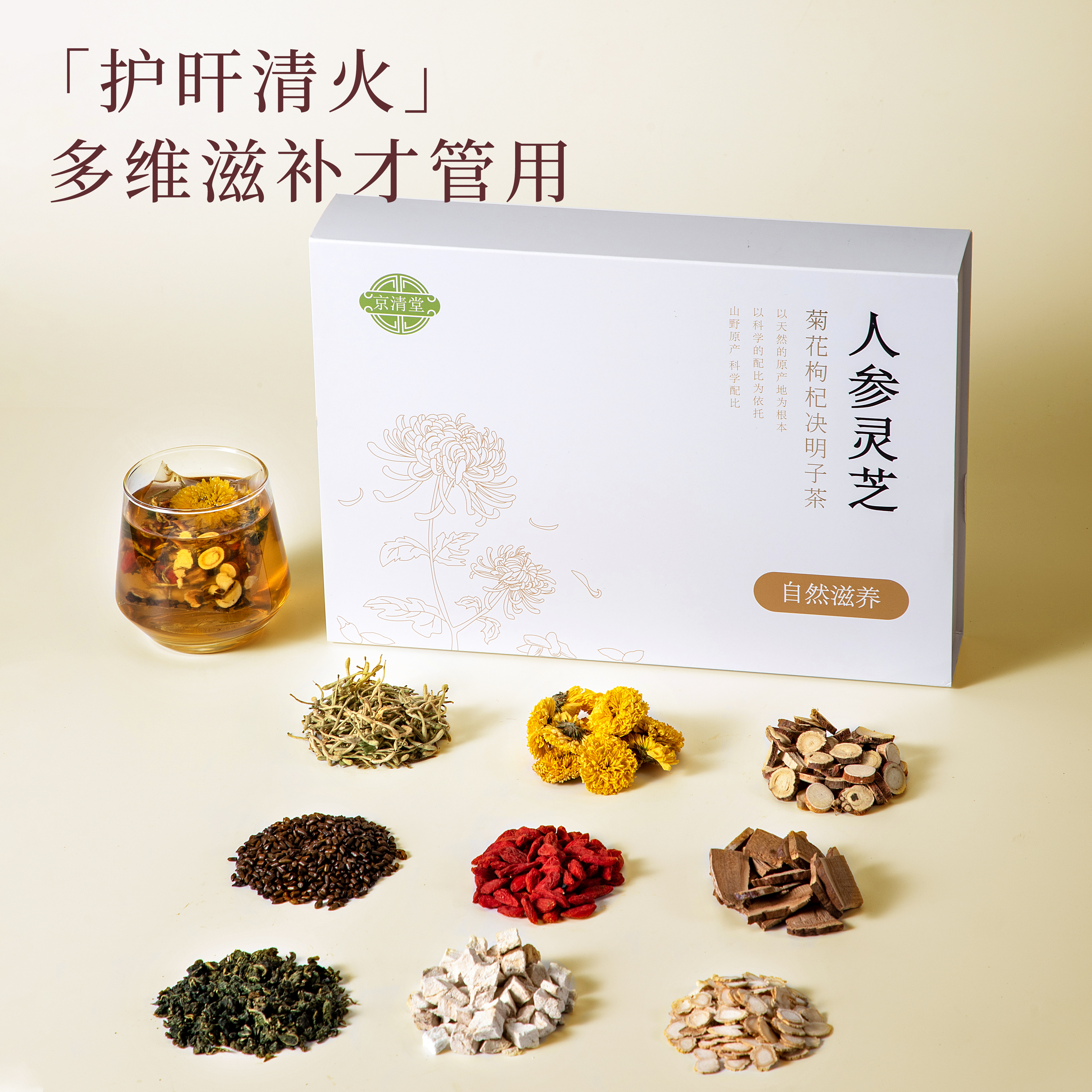 人参灵芝菊花枸杞决明子茶金银花牛蒡根清去火养益茶肝熬夜养生茶