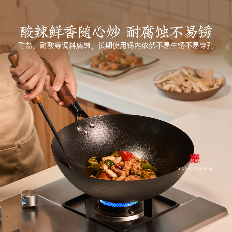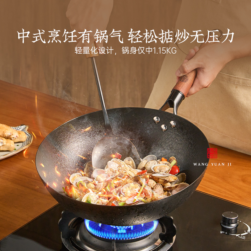正品 铁锅无涂层家用熟铁炒菜锅不粘锅适用燃气灶专用炒锅 传统老式
