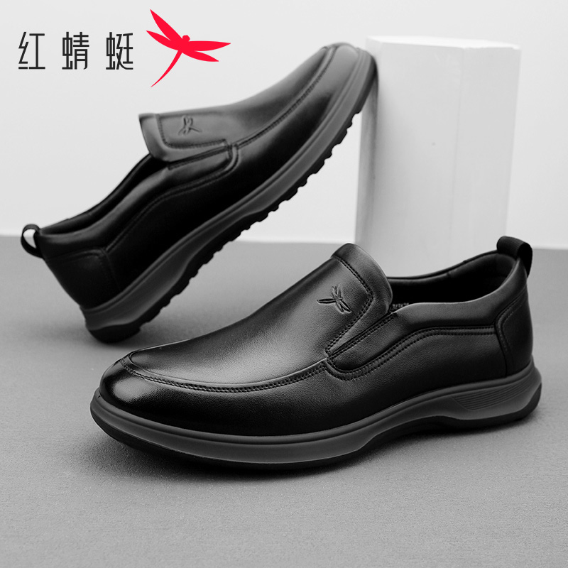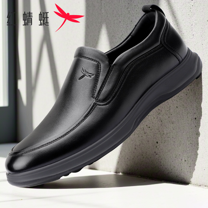 秋季 子透气中老年爸爸鞋 男士 软底鞋 男 真皮商务休闲皮鞋 红蜻蜓男鞋