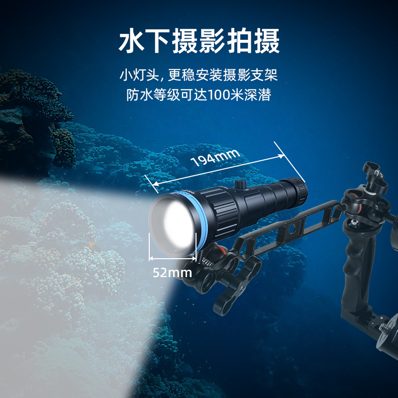 潜水手电筒强光专业防水充电灯水下潜水专用超亮远射装 备深潜照明