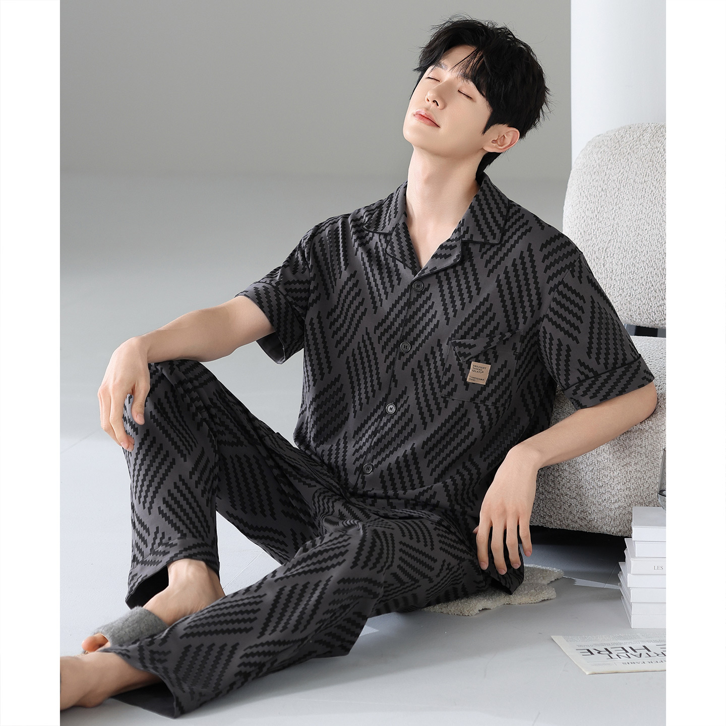 长裤 薄款 夏天全棉夏款 睡衣男士 大码 纯棉短袖 半袖 高级感家居服 夏季