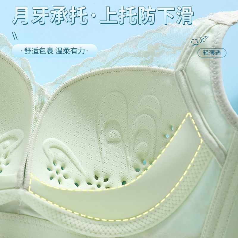 古今夏季 内衣女蕾丝洞洞杯透气侧收防下垂无钢圈调整型文胸罩 薄款