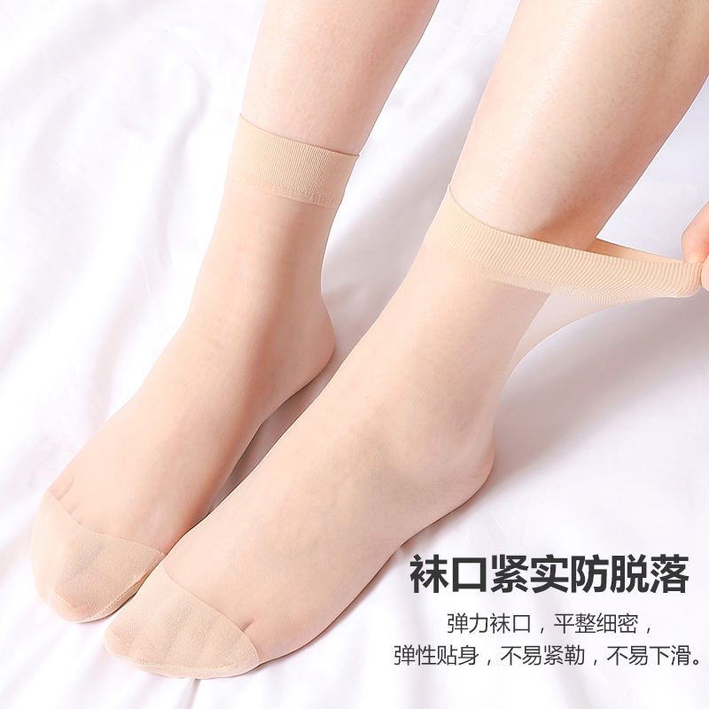 浪莎20双水晶袜短夏季 防滑肤色中筒 丝袜短袜子女士防勾丝肉色薄款