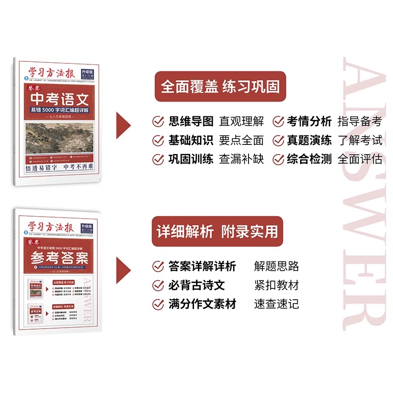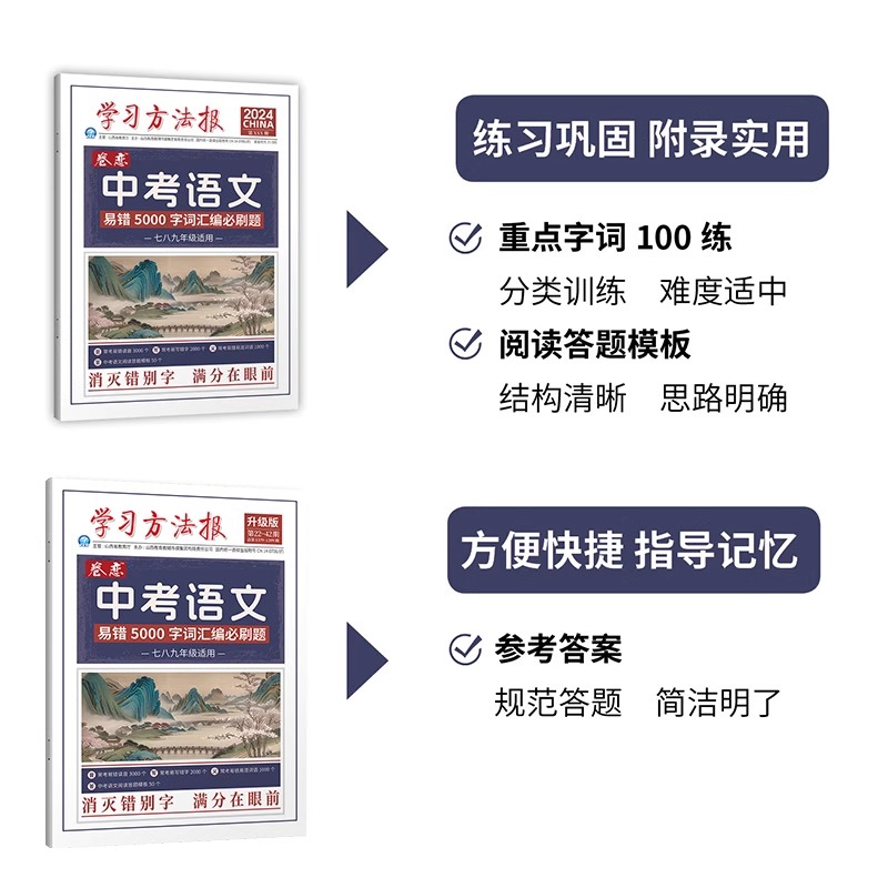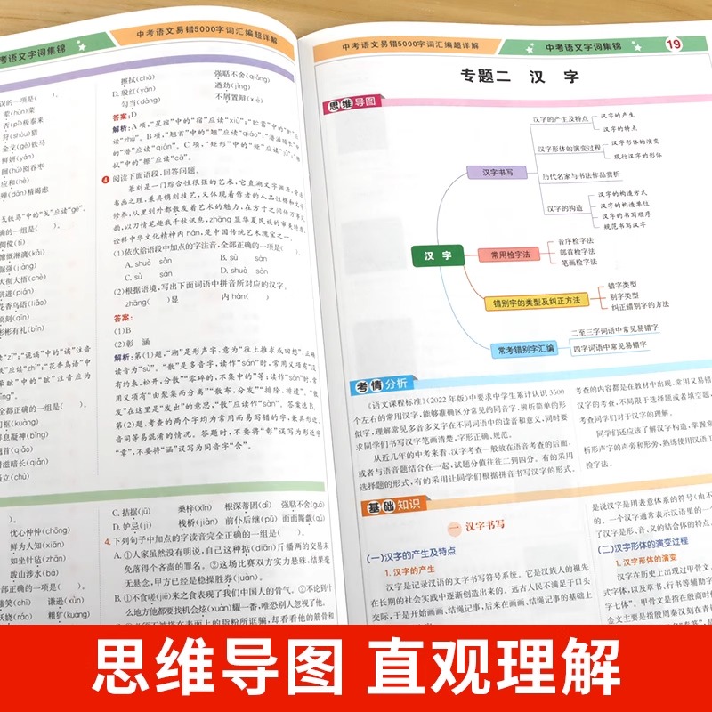 学习方法报卷恋中考语文易错500字词汇编超详解 必刷题初中七八九年级易错字训练大全一本通初一二三中考易错易混词语专项提分训练