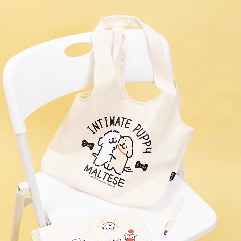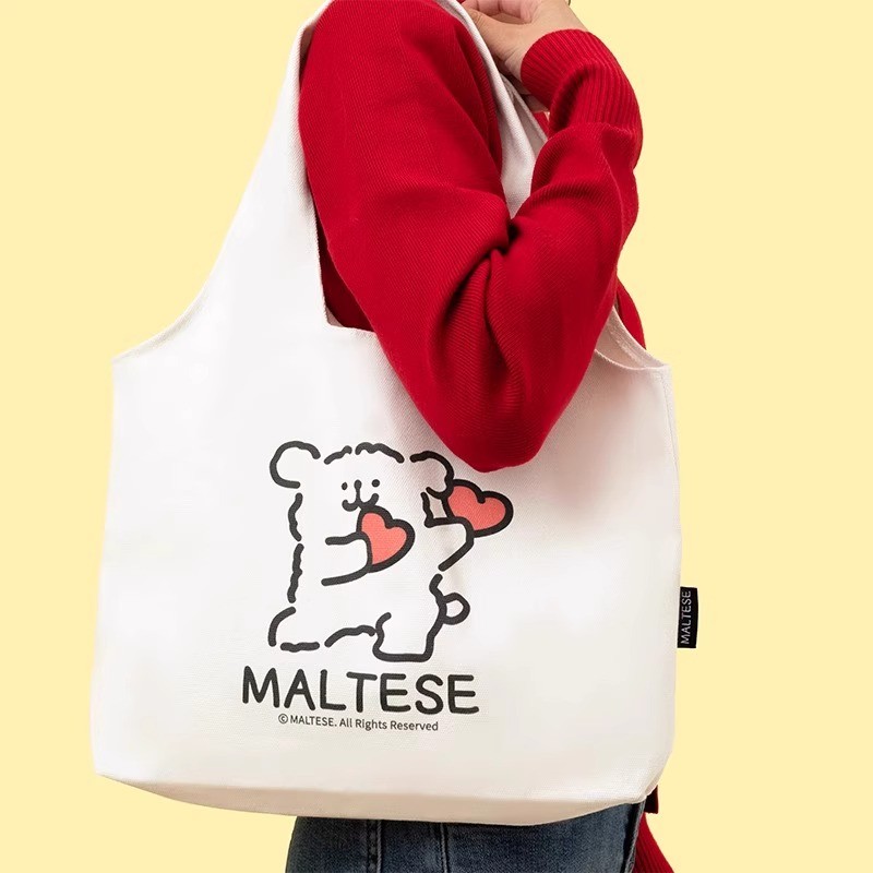 线条小狗Maltese原创帆布包卡通可爱印花学生单肩托特包女生礼物