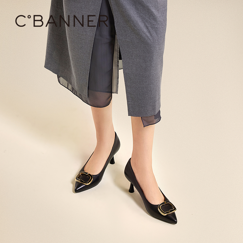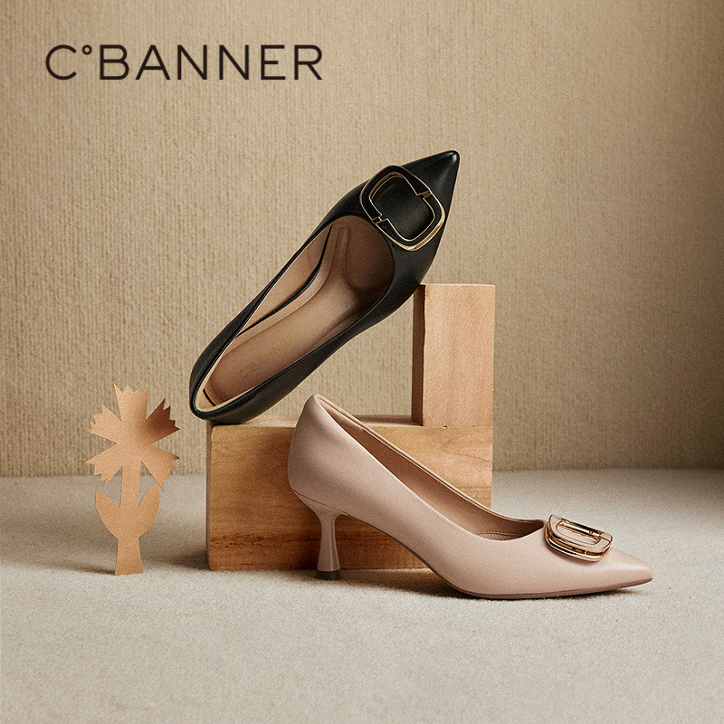 新款 女2025秋季 千百度裸色高跟鞋 通勤尖头浅口单鞋 静音系列