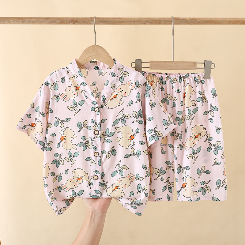 男童女童绵绸儿童睡衣女孩宝宝短裤 棉绸套装 空调家居服 短袖 夏季