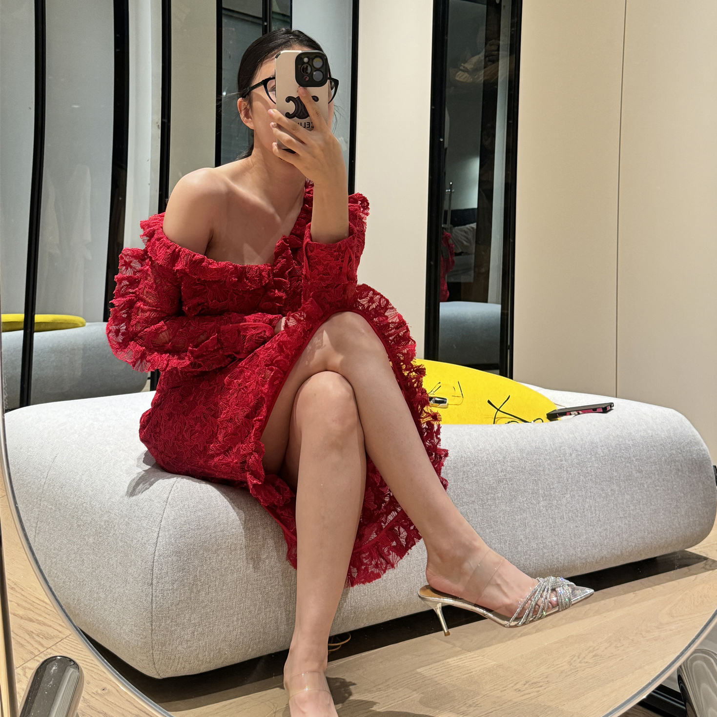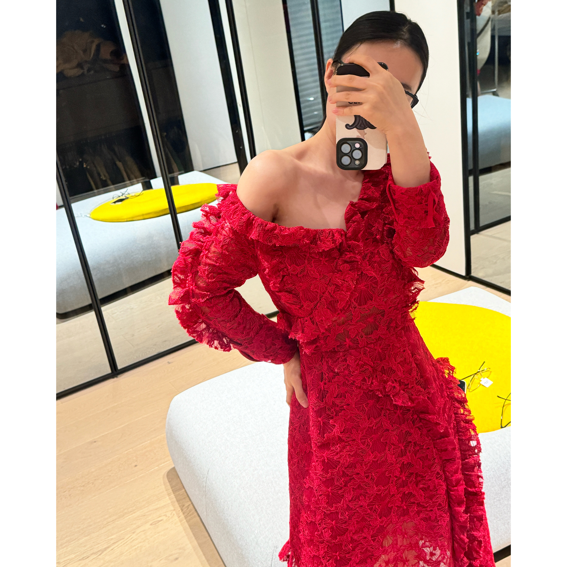 红色蕾丝不规则连衣裙高级气质合集 whole9yard 清货折L码