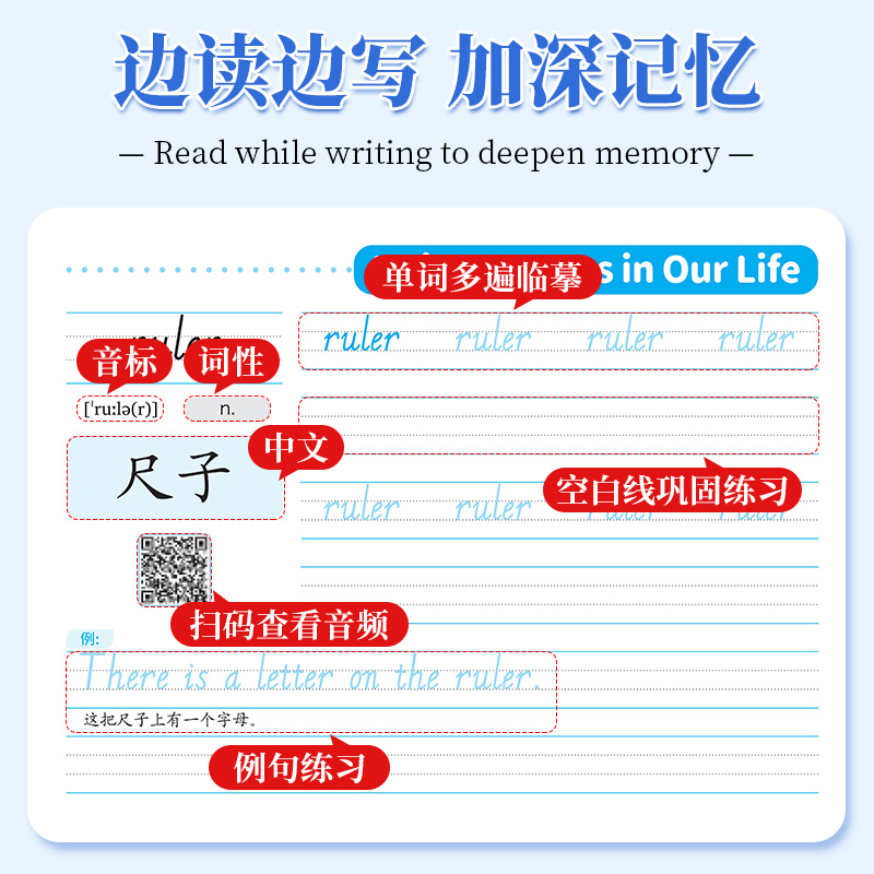 小学英语字帖三年级上册下册课本同步手写体字母单词描红练习册扫码 广州教科版 跟读练字本儿童意大利斜体英文默写 新版 2025秋季