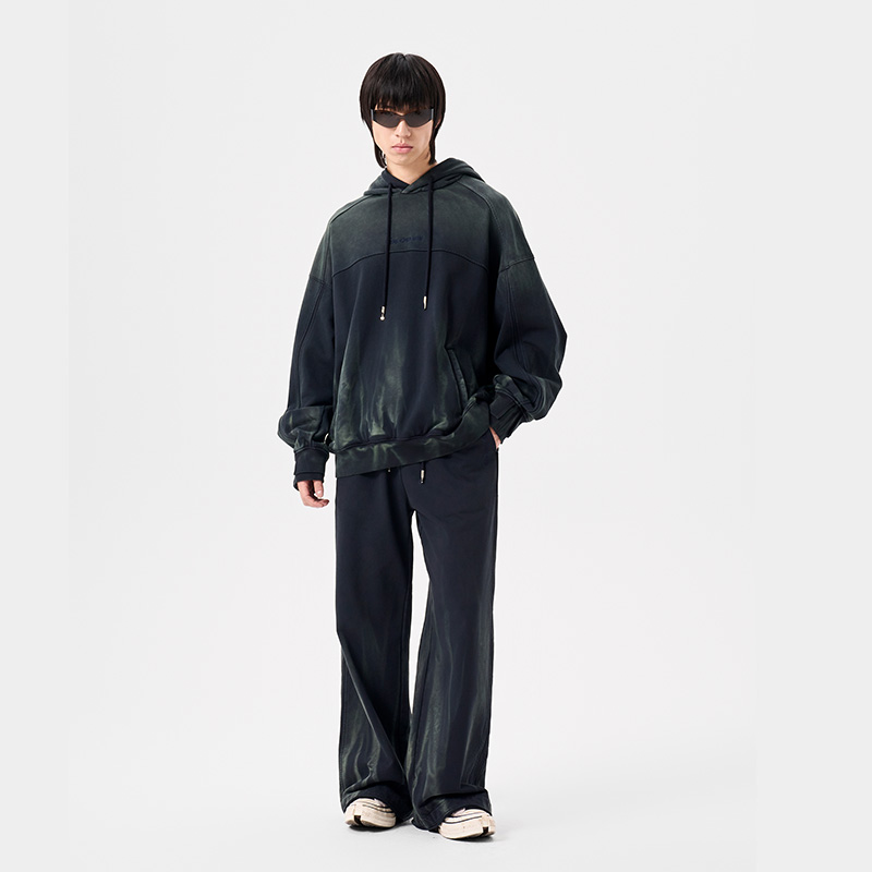 潮牌街头宽松运动帽衫 秋季 外套 重磅复古灰色连帽卫衣男款 V37美式